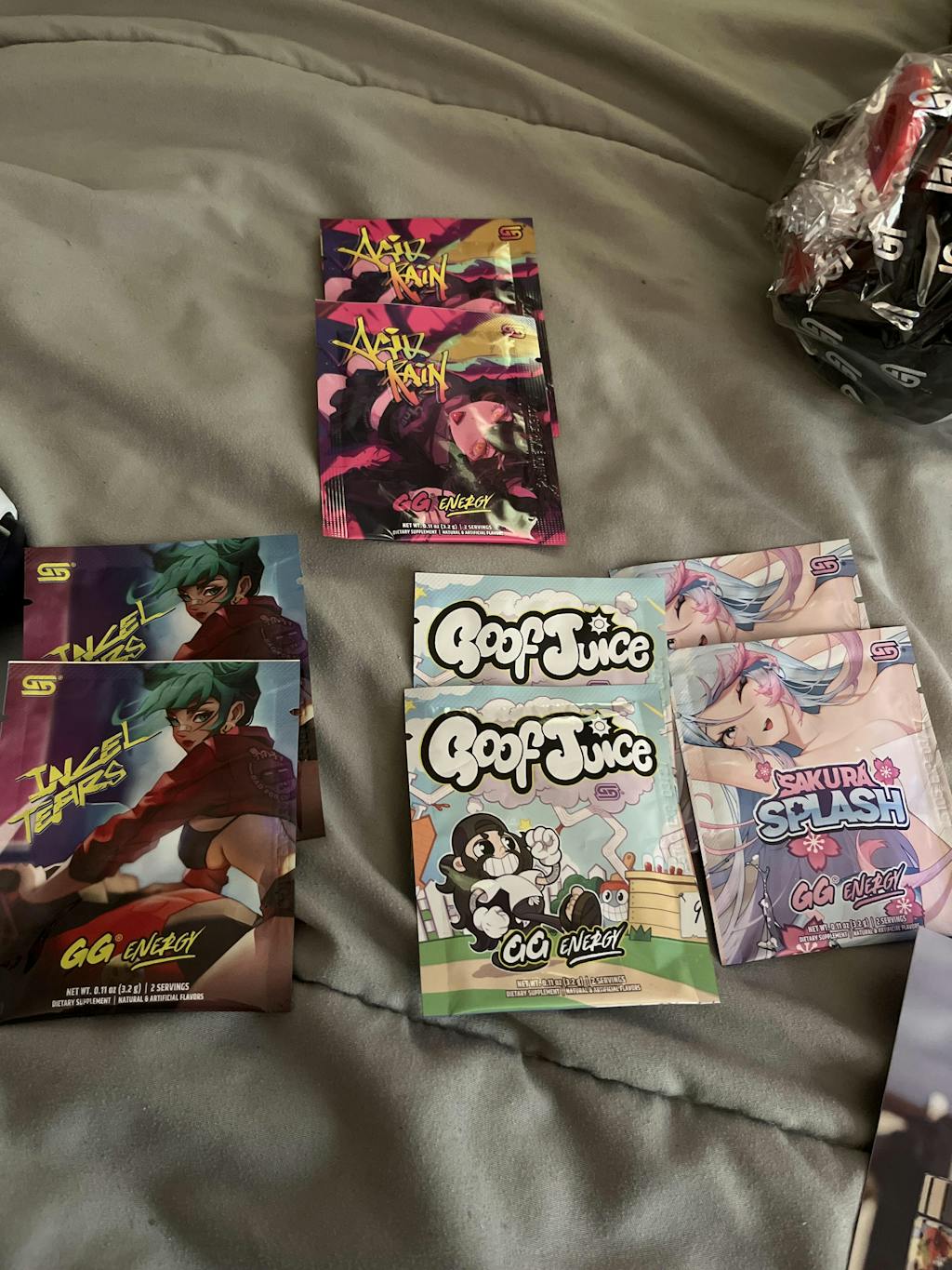 I was thrilled to have gotten incel tears with these sample packs, as I've been wanting to try it for a while! Every flavor is delicious and I find myself drinking gamersupps when I shouldn't be just to get that taste again!